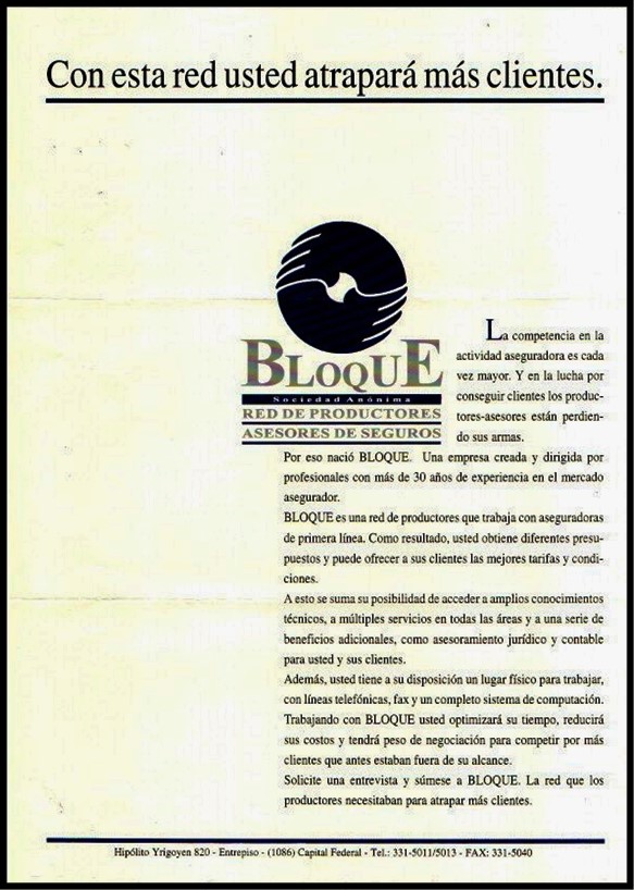 Folleto. Con esta red usted atrapará más Clientes. Bloque Sociedad Anónima – Red de Productores Asesores de Seguros.