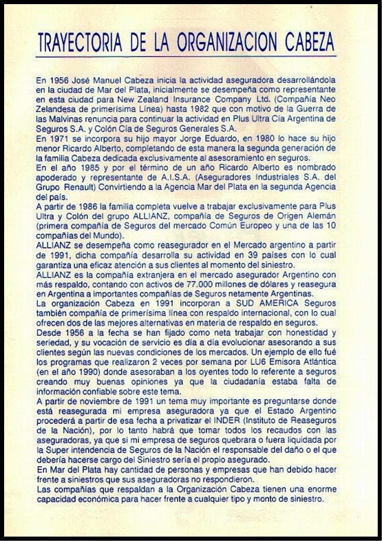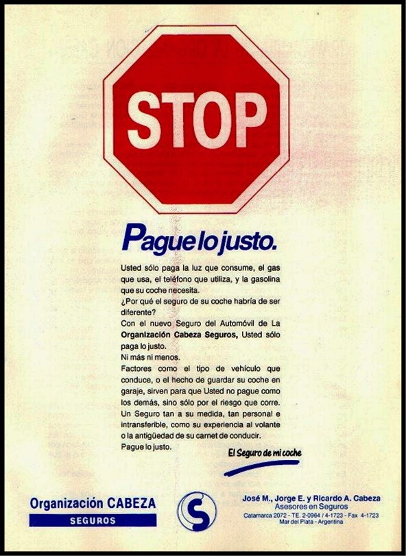 Folleto. Pague lo Justo. 1991. Organización Cabeza Asesores en Seguros.