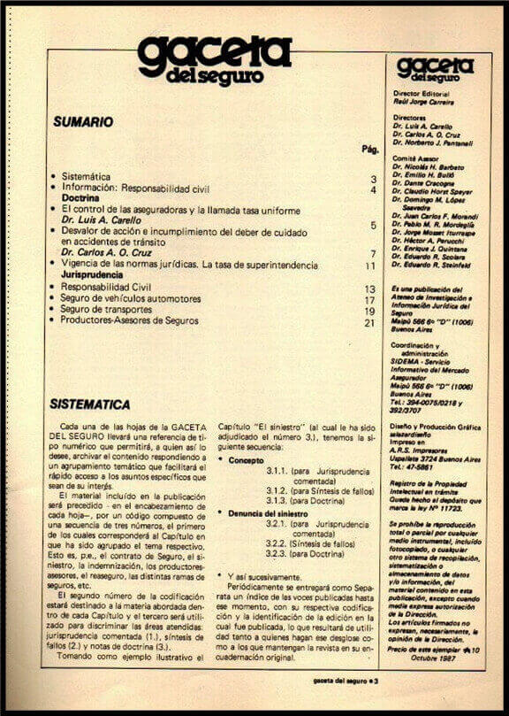 Gaceta del Seguro. Nº 2. Octubre 1987.