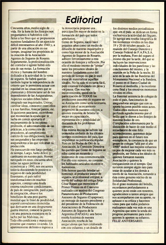 Gente de Seguros. Año 1990. 50 Aniversario de la Asociación Agentes de Seguros de Rosario.